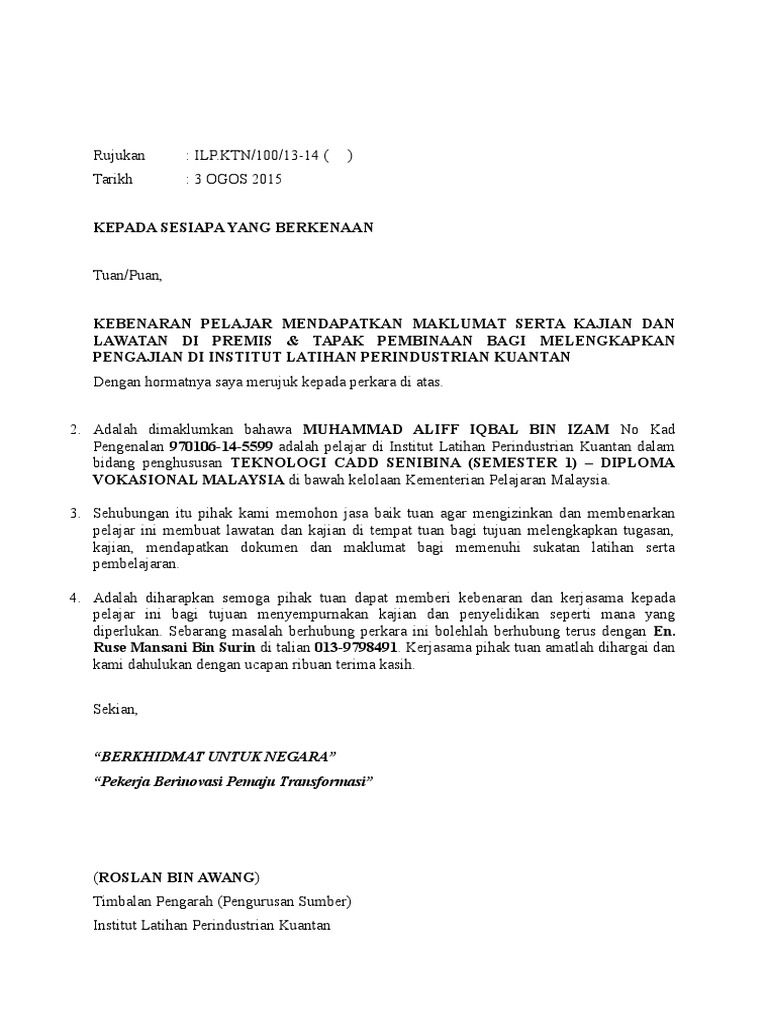 Contoh Surat Kebenaran Menggunakan Kenderaan Pdf Letter 7saudara Com